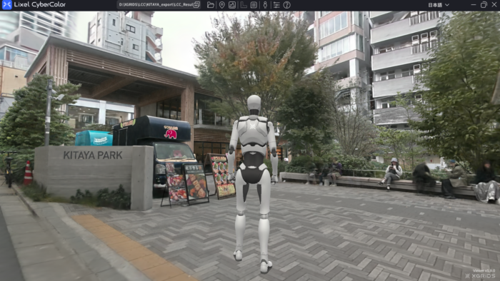 PARCO周辺とは違って、「渋谷」という街の中にぽつりと佇む落ち着いた公園でした。周りはビルやマンションに囲われていて、人ごみに疲れた方々が羽休めの場として、チルタイムを楽しんでおられました。作業時はお昼時でしたので、キッチンカーが並んでおり、奥に見えます建物には「ブルーボトルコーヒー」があります。筆者も当時はお腹をすかせていたので、あたりに漂う良い匂いと闘いながら作業したのを覚えています(最後は誘惑に負け、美味しいコーヒーとサンドウィッチをいただきました(笑))。作業においては、植物が多かったので普段よりもゆっくりと歩くようにしました。ゆっくりと歩くことで、より細かい点群データが取得でき、綺麗な3DGSを作成することができます。